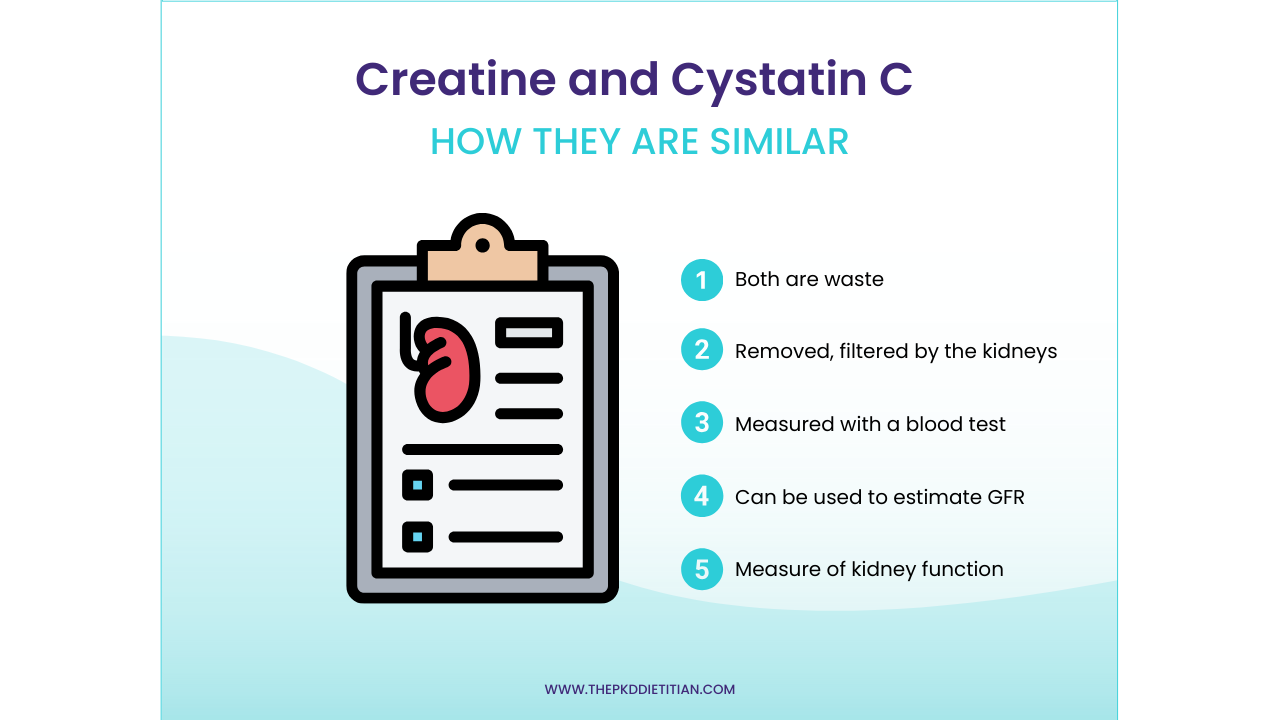 - Both measure waste: Creatinine and Cystatin C are both waste products filtered by the kidneys and can be measured with blood tests.